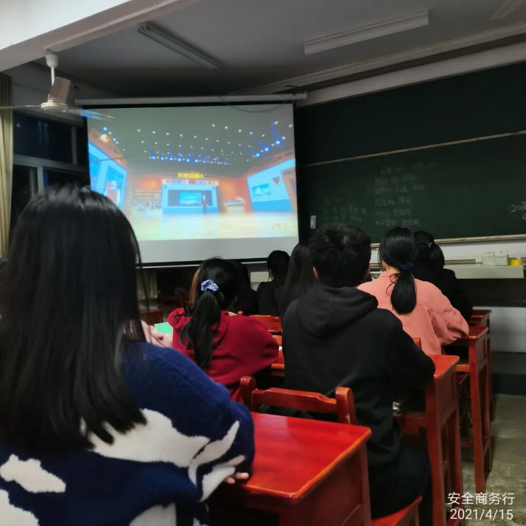 为牢固树立和全面践行总体国家安全观,推进全民国家安全教育,增强大学生的国家安全意识,2021年4月15日晚自习20:00,学校开展2021年全民国家安全教育日宣传教育活动,由保卫处、学生治保委员会及易班发展中心组织大家观看“我是接班人”网络大课堂《国家安全我们在一起》线上直播。