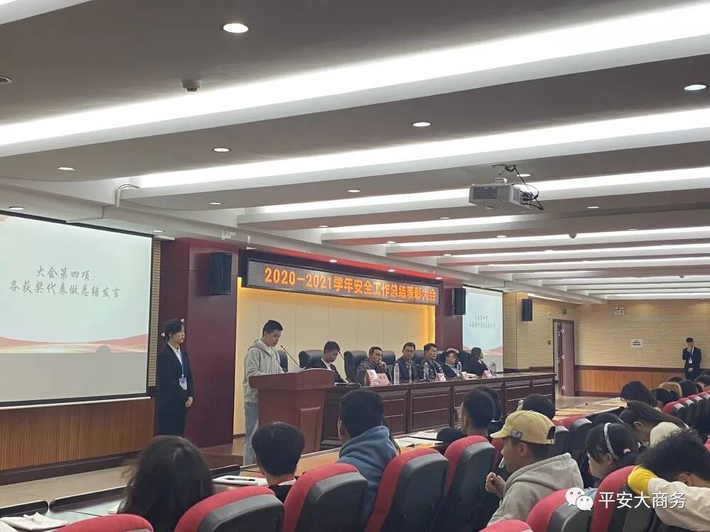 总结:回首过去的一年感谢各位领导、老师的指导与支持,也感谢大家的配合,安全保卫工作离不开在座每一位的辛勤付出,希望获奖宿舍戒骄戒躁,再接再厉,其他宿舍以获奖宿舍为榜样,在以后的安全文明寝室评比中勇创佳绩,共创和谐校园,也希望获奖集体和个人戒骄戒躁,再接再厉,其他班级以获奖班级为榜样,积极参与学院各项安全教育活动中来,提高自己安全知识水平。未来我们一起加倍努力,让湖南商务职业技术学院的治保工作更加的成功。
