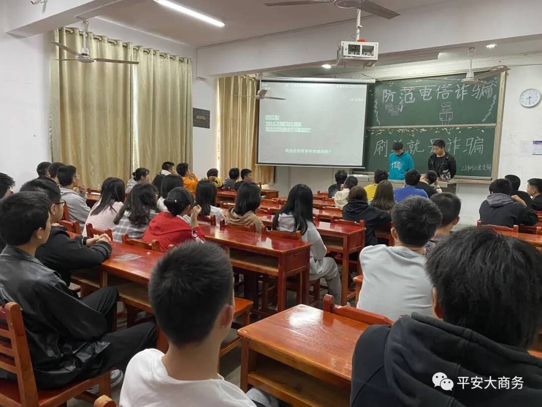 2021年11月2日为了响应学校“无诈校园”的号召,提高广大学生的防诈骗意识,增强防诈骗能力,让更多学生来关注校园诈骗,让更多的大学生对校园诈骗引起足够重视,学校举行了关于防范电信诈骗的主题班会。