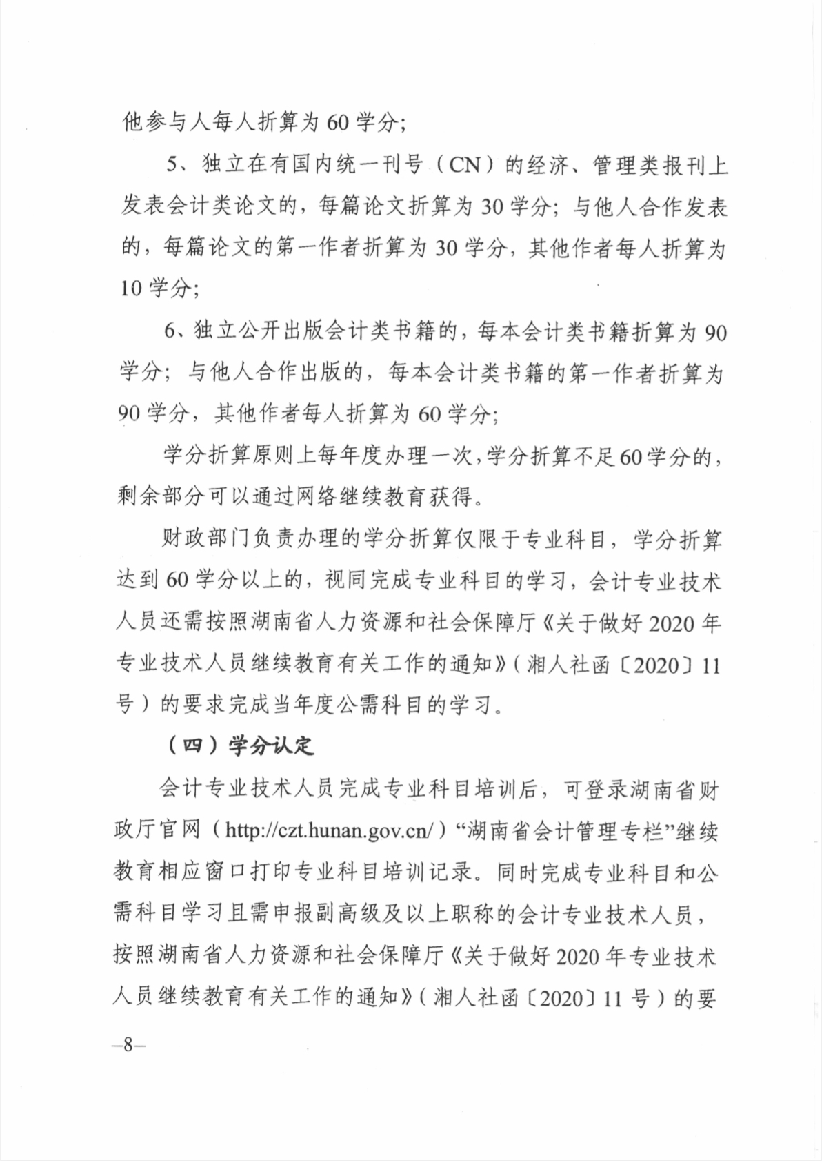 关于做好2020年度全省会计专业技术人员继续教育工作的通知(湘财会函〔2020〕8号)