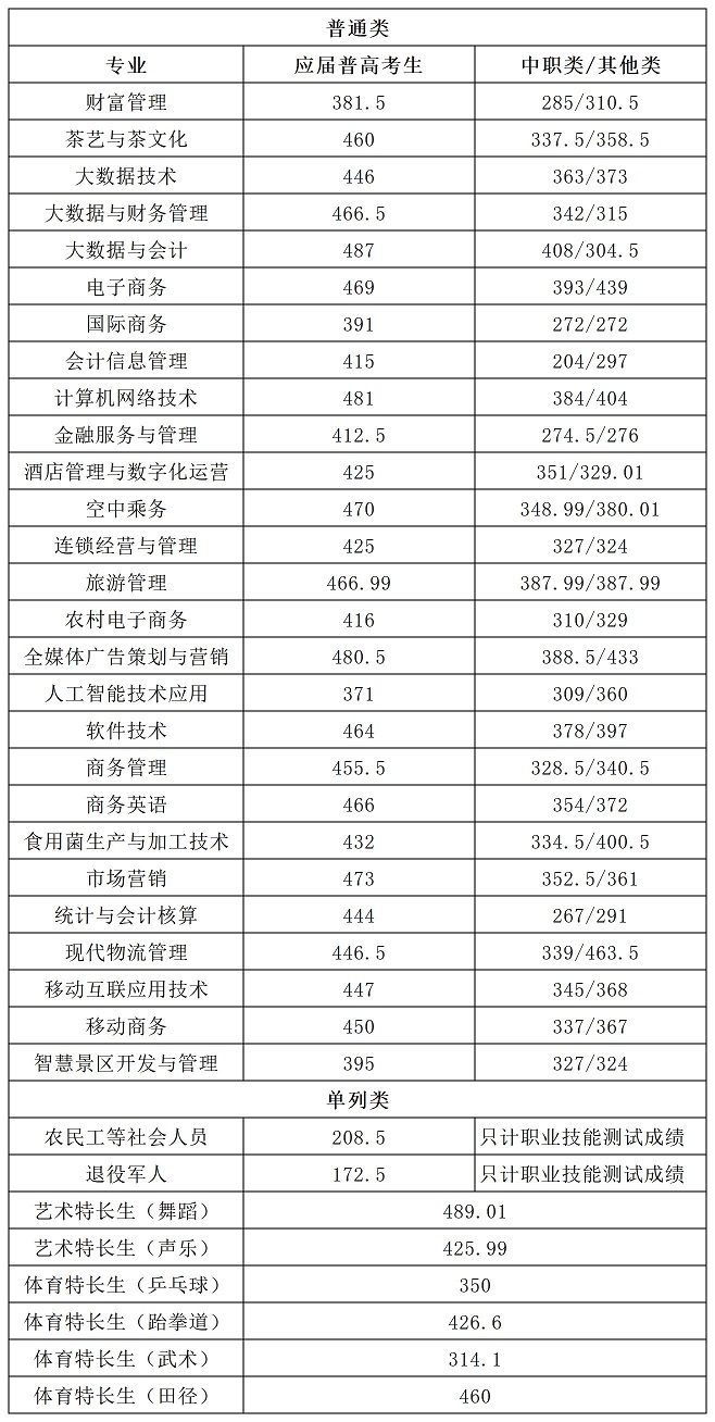 湖南商务职业技术学院2024年单独招生第一志录取分数线