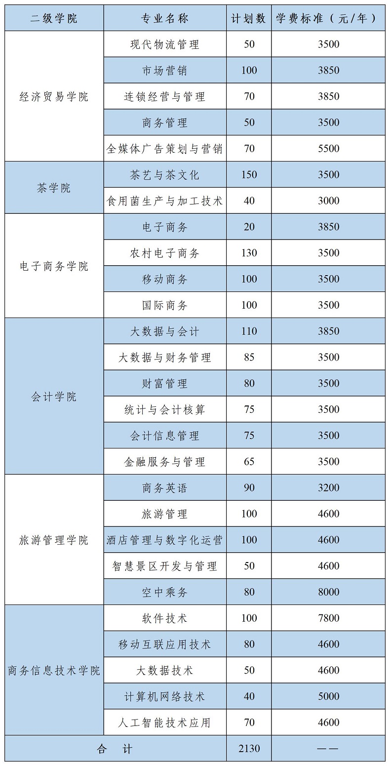 湖南商务职业技术学院2022年单招计划表