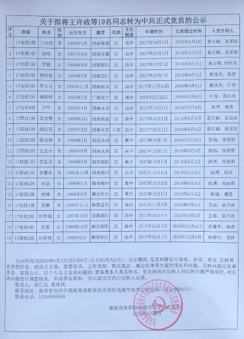 2020年上半年电商学院学工党支部发展新党员公示