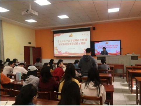 2020年10月13日中午12点20分,电商学院学工党支部全体党员在二教110教室开展了“学习习近平总书记在湖南考察调研时系列重要讲话指示精神”的理论学习。