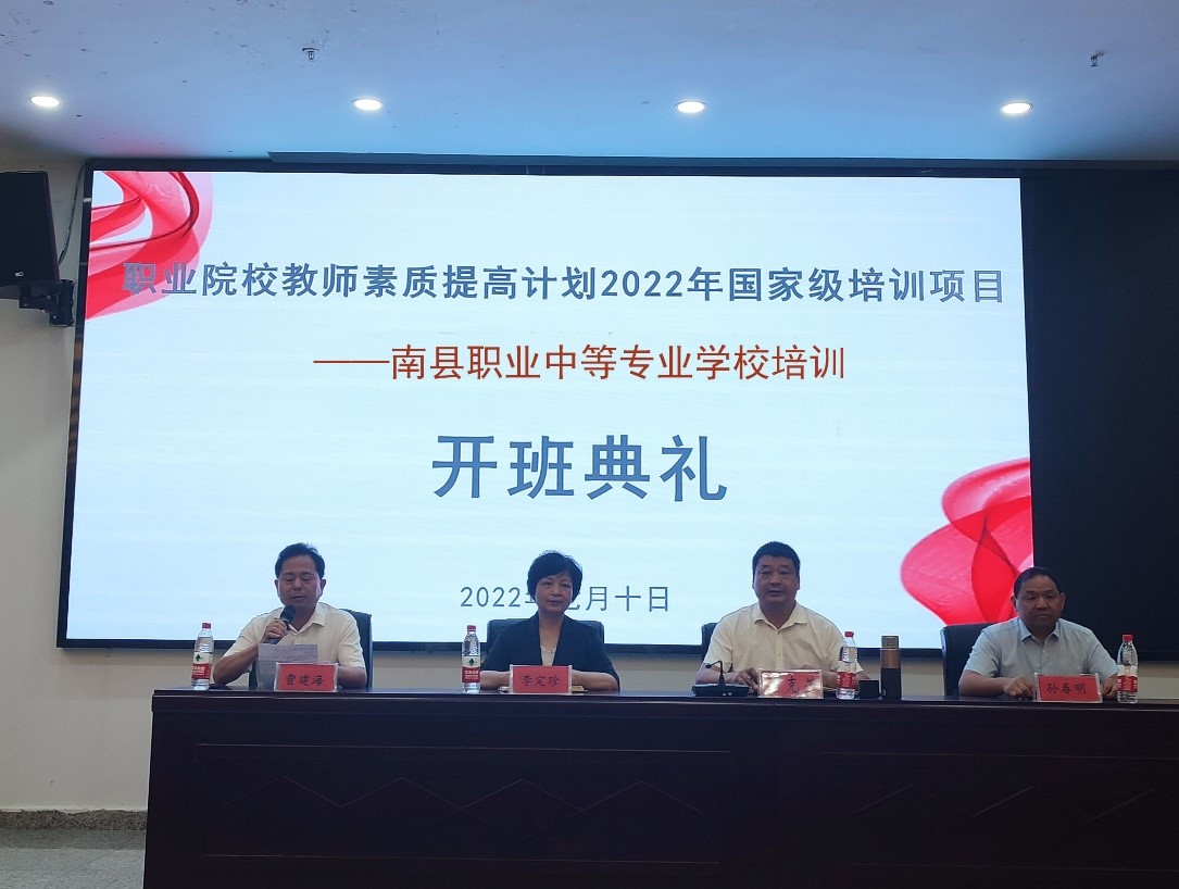 职业院校教师教育教学素质提高计划2022年国家级培训项目是“送培到校、精准培训”项目是湖南省教育厅的特色项目,南县职业中等专业学校培训班由湖南省教育厅主办、湖南商务职业技术学院承办。根据送培到校精准培训项目实施需求,全面提升中职教师教学设计与课堂实施能力为目标,设计了政策解读、课程思政、模块化课程设计与课程标准、课堂教学设计与教案、课堂教学实施 5 个模块的学习内容。