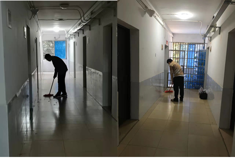 每个周末的清晨,大多数同学们都在被窝里享受难得的休息时间,符健同学却早早起床,在空旷的楼道里帮助卫生员阿姨打扫卫生。空旷幽长的寝室楼道、各寝室门口的卫生死角、楼梯间的台阶缝隙等等,都是符健同学的清扫对象。每当周末清晨的阳光铺洒开来,符健同学就会习惯性地拿起扫帚,默默地弯下腰,跟随卫生员阿姨与着垃圾灰尘“作斗争”。从开学不久到现在,符健同学已经坚持两个月了。