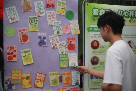 活动现场,“情绪收藏馆”以独特的方式让同学们表达内心感受。大家将烦恼、焦虑写在便签纸上,投入“情绪信箱”,或绘制心情涂鸦张贴在“情绪墙”,用艺术与文字完成情绪的可视化释放。一位参与同学表示:“把说不出口的压力变成看得见的文字,感觉心里轻松多了。”