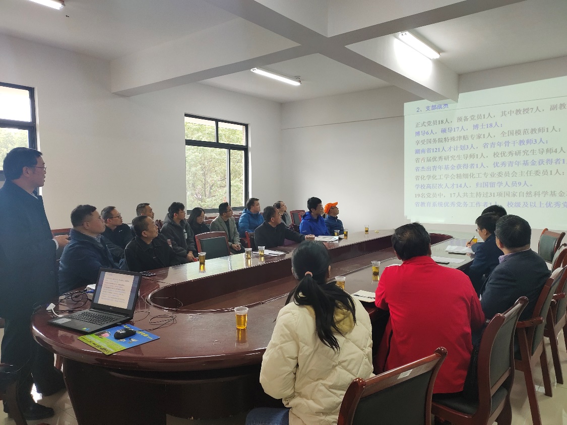 党建促科研,联谊共发展。2021年11月9日,湖南科技大学理论有机化学与功能分子教育部重点实验室党支部全体党员应邀来到湖南工程学院,与材料与化工学院教工第一党支部举行交流活动,此次党支部联谊交流由本党支部书记唐子龙同志和材料与化工学院党委书记张何同志共同主持。