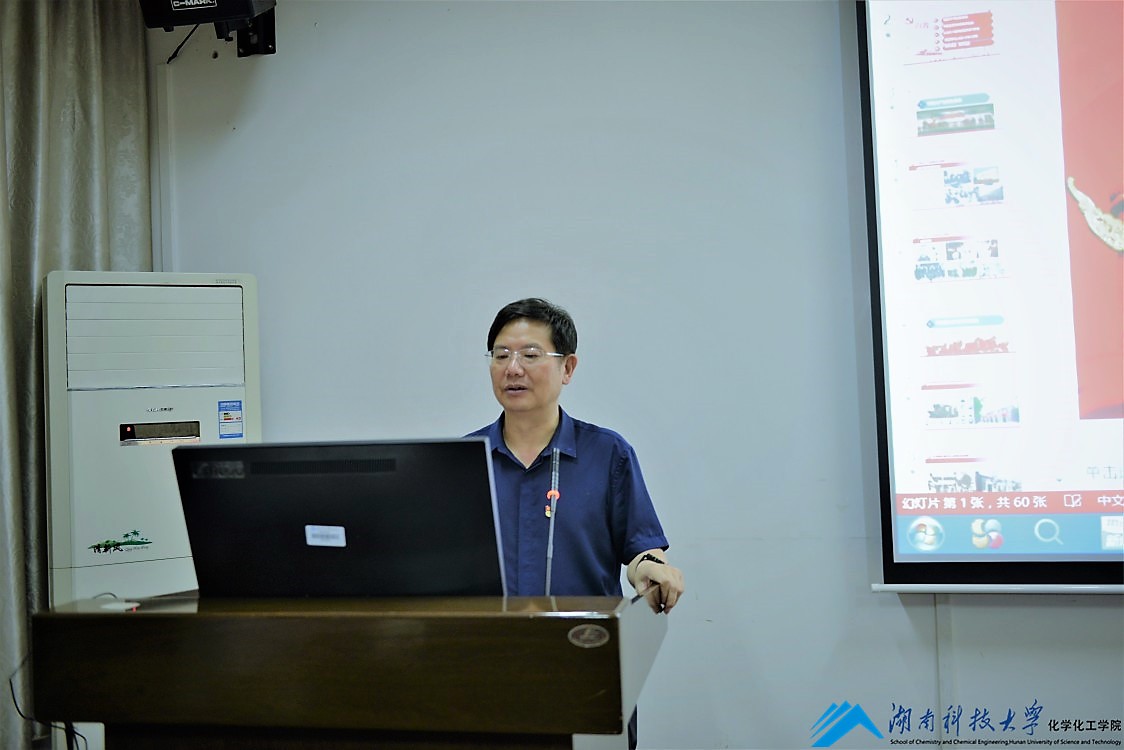 5月26日晚我院党委在化工楼310会议室组织了一场党史学习教育专题宣讲报告会,王卫军副校长做了主题为“中国共产党的一百年”的宣讲报告。我院师生党员90余人到场聆听。 宣讲报告会由院党委书记曾荣今主持。