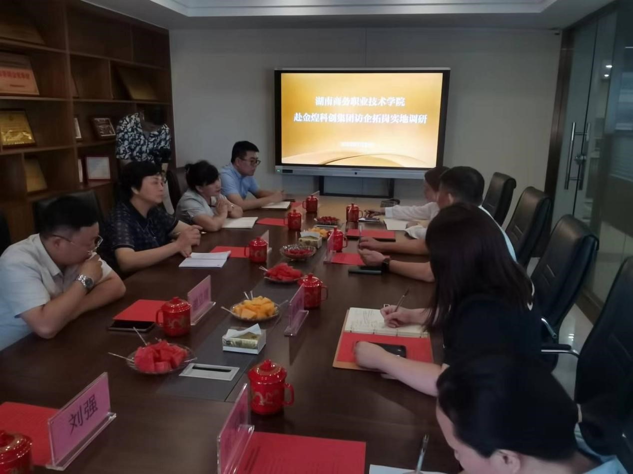 (通讯员:唐柳荷)2023年7月20日,湖南商务职业技术学院院长李定珍率领发展规划与合作交流处处长唐柳荷、经济贸易学院党总支书记谢立靖、组织人事部副部长陈龙、招生就业处就业干事刘强一行前往校企合作企业——湖南金煌科创投资集团有限公司长沙雨花区喜盈门总部(以下简称金煌科创集团)开展实地调研考,详细考察企业实力、了解企业生产与运营情况,并与企业负责人就校企合作共育人才、岗位需求等方面进行深入交流,促进校企双方精准对接,协调合作事项按照校企合作协议落地落实,探讨深化校企合作产教融合事项。