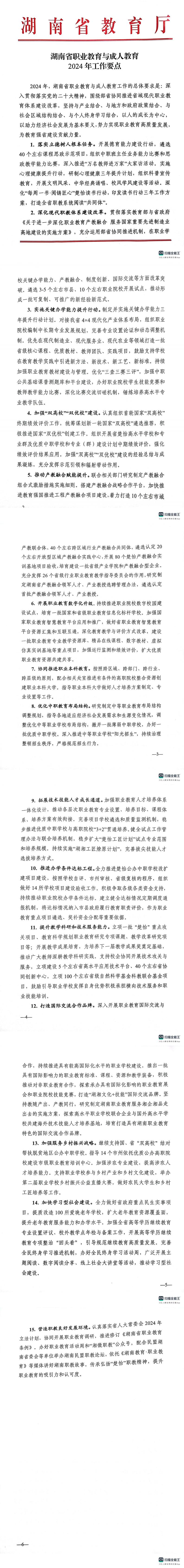 湖南省职业教育与成人教育2024年工作要点