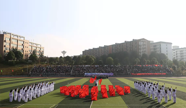 本网讯(记者 胡颖 实习记者 陈嘉涛、胡星) 11月9日上午8时20分,我校第九届校运会开幕式在田径场隆重举行。