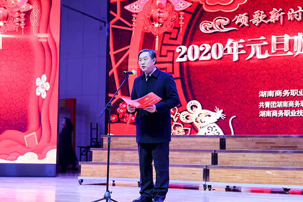 活动伊始,周忠新代表学校党委、行政作题为“担当新使命、再创新辉煌”的新年献词,向全体师生员工表达了诚挚的问候和感谢。回首2019年,周忠新指出学校以政治建设为统领,党的建设展现新作为;深化教育教学改革,人才培养达到新高度;实施人才强校战略,师资建设彰显新成效;聚焦社会行业需求,服务能力得到新提高;坚持以问题为导向,民生工程有了新变化。2020年是全面建成小康社会和“十三五”规划收官之年,建校70周年。他强调,要全面深入贯彻党的十九大精神,坚持以习近平新时代中国特色社会主义思想为指导,以更加饱满的热情、更加主动的态度、更加进取的精神、更加高度的使命感和责任感,深化学校内涵式发展,加快建好卓越、力争三升建设步伐,共同谱写商务的瑰丽华章。