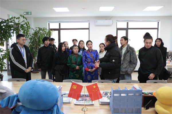 随着沈阳城市学院主创的30集校园剧《大三女生》喀尔喀蒙古语版在蒙古国教育电视台热播,1222日,学校迎来了一批特殊的“剧迷访客”——蒙古国伊和扎斯格大学师生代表团,13名师生都来自表演专业,他们与我校学生一起进行影视剧的联合创作,从《大三女生》的“观众”变身“剧中人”,通过带妆演绎、台词互动,深度体验中国大学生的青春成长故事,为中蒙文化交流与高校合作写下生动注脚。辽宁电视台、辽宁日报、沈阳日报、沈阳发布、沈阳晚报、指尖沈阳、沈阳电视台等媒体记者来校采访报道。