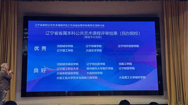 2025年12月22日召开的辽宁省高校公共艺术课程评估工作总结会暨学校美育交流研讨会上,沈阳城市学院凭借完善的公共艺术课程体系、显著的美育教学育人成效,获评辽宁省高校公共艺术课评估优秀单位,并作为8所经验分享高校之一,在会上作典型发言和案例分享,向全省高校分享美育工作经验。