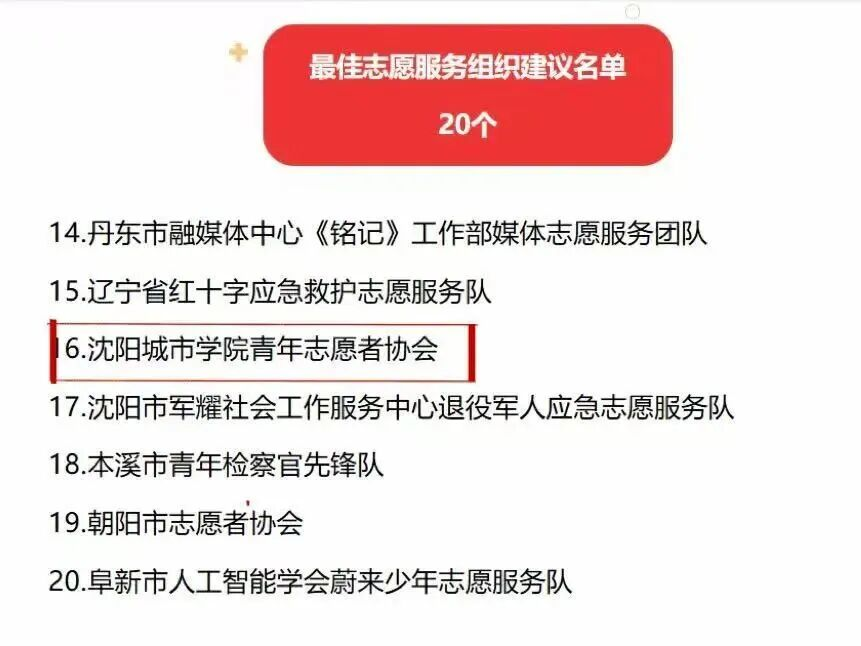 我校青年志愿者协会入选“辽宁省志愿服务之星先进典型‘最佳志愿服务组织’”宣传选树名单