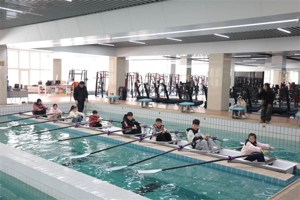 “这个划船机看起来帅,划起来可真累!但我坚持下来了!”王杨茗气喘吁吁却一脸自豪。在专业训练基地,孩子们在团队协作中掌握竞技体育的核心要素。