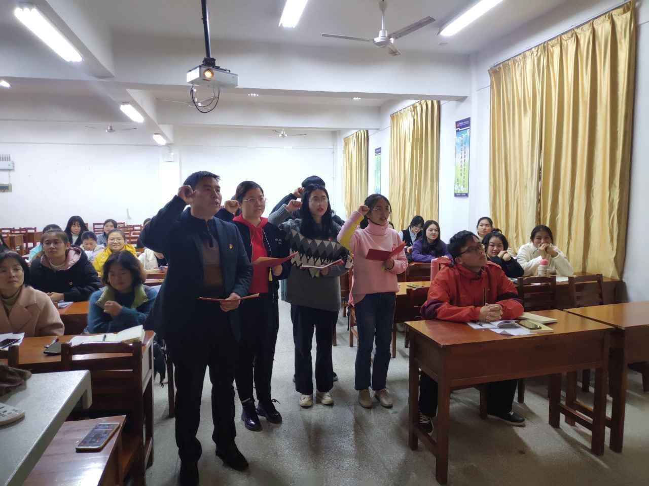二、政治生日,集中为今年下半年政治生日的党员颁发生日贺卡,并重温入党誓词。
