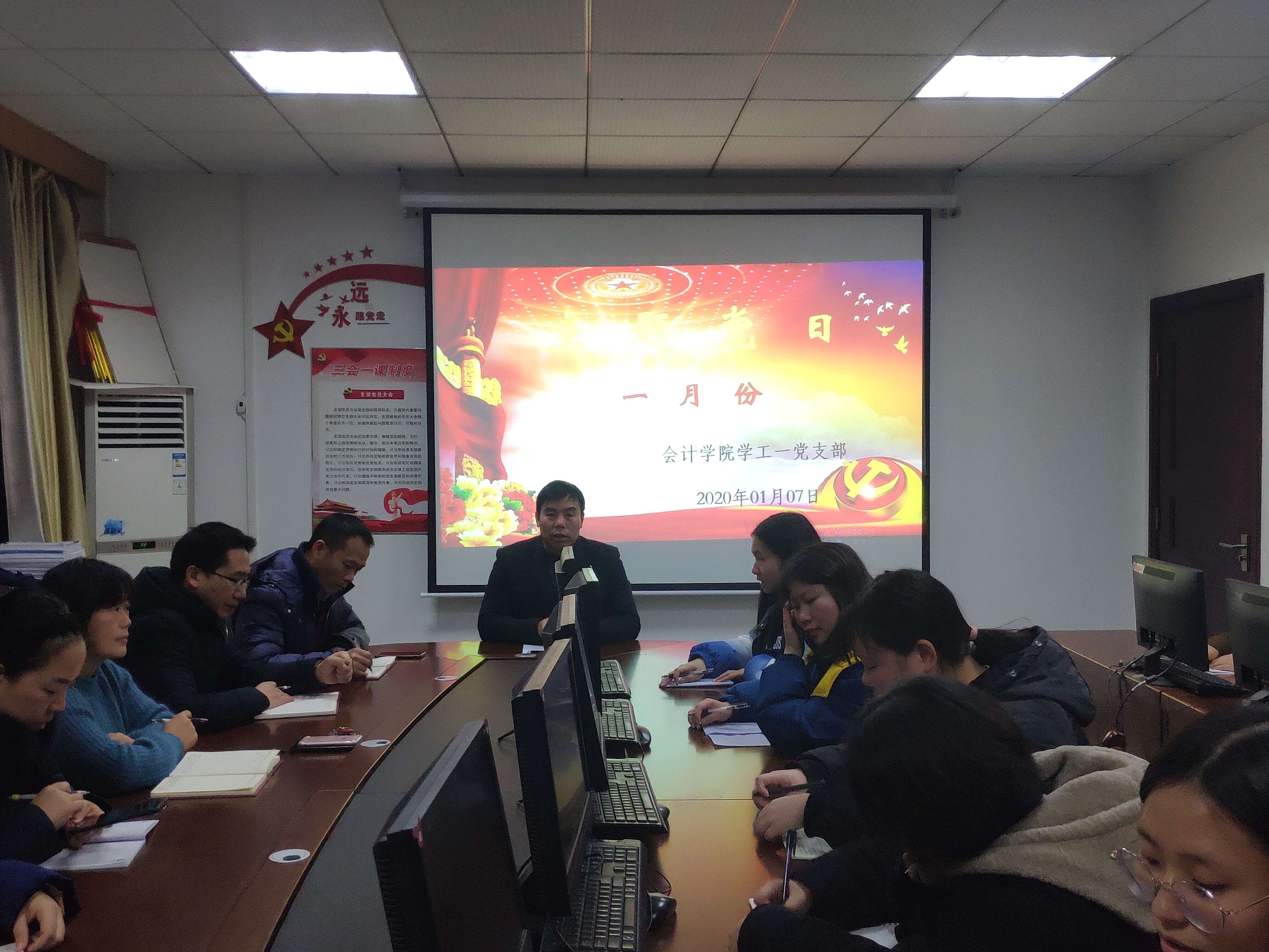 2020年1月7日下午16:30在办公楼310开展2020年1月份主题党日,参加此次会议的是会计学院学工一党支部教工党员和18级学生党员,本次会议主持人是朱泳霖同志。主要内容如下: