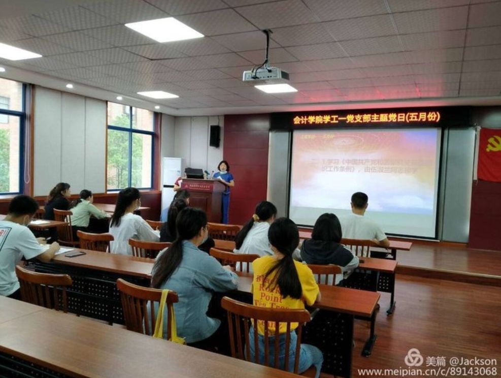 会计学院学工一党支部于2020年5月29日中午12:30在二教201召开五月份主题党日活动,此次党日活动是学校疫情防控阶段性胜利复学后线下现场首次召开支部主题党日活动。参加此次会议的人员是会计学院学工一党支部全体成员,杨巧同志主持本次会议,本次主题党日主要内容有: