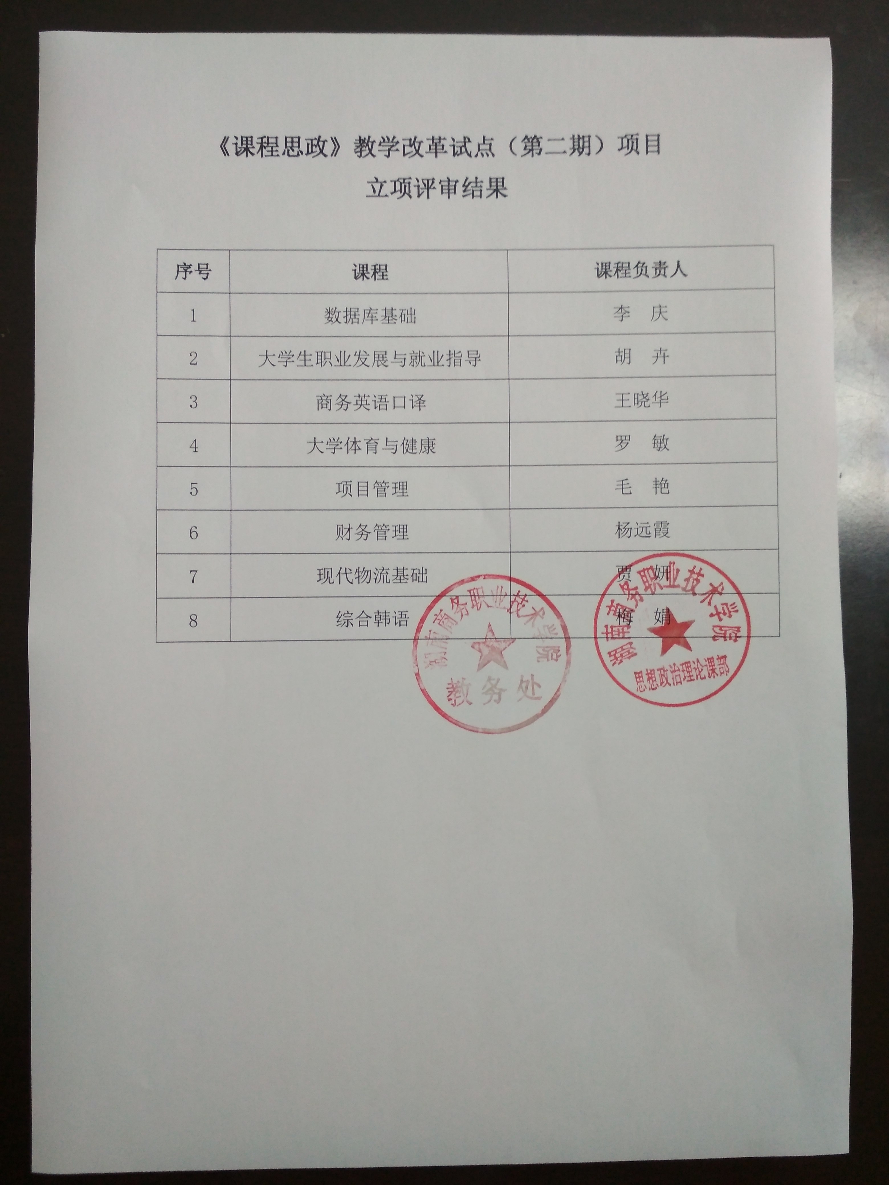 关于《课程思政》教学改革试点(第二期)项目立项评审结果的公示