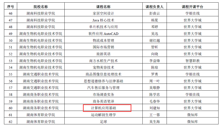 喜获2018年湖南省高等职业教育省级精品在线开放课程立项 。