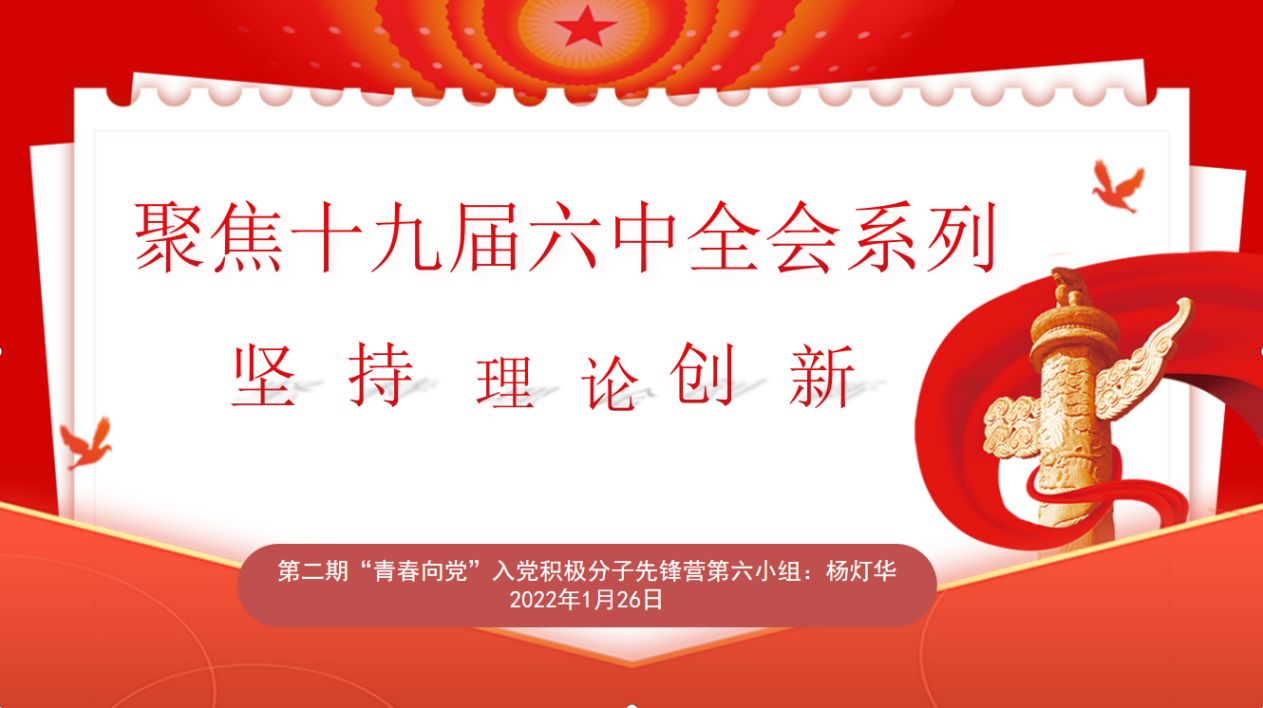 (通讯员 刘睿希)为深入学习党的十九届六中全会重要精神,1月20日20:00,经济贸易学院学工党支部以线上会议的形式开展聚焦十九届六中全会第七次主…【查看全文】