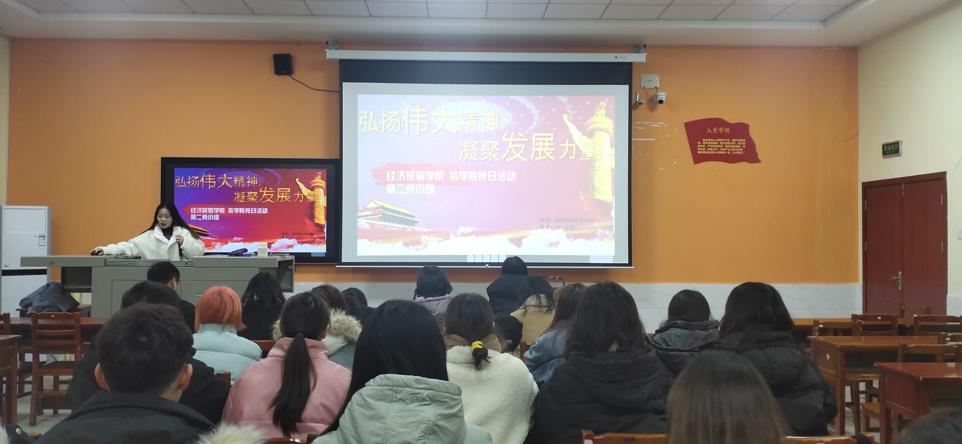 (通讯员 何湘)2020年12月29日14:30,经济贸易学院党支部于二教101教室(经济贸易学院分党校)开展弘扬伟大精神,凝聚发展力量主题党日线上线下活…【查看全文】