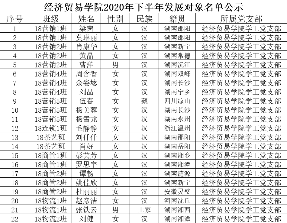 2020年11月5日,经支部委员会研究,报上级党委备案同意,将梁茜等22名同志列为发展对象。报据发展党员工作有关要求,现将其有关情况予以公示。 经…【查看全文】