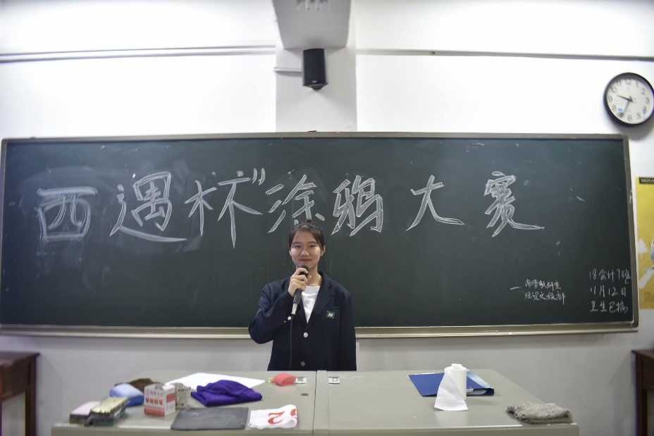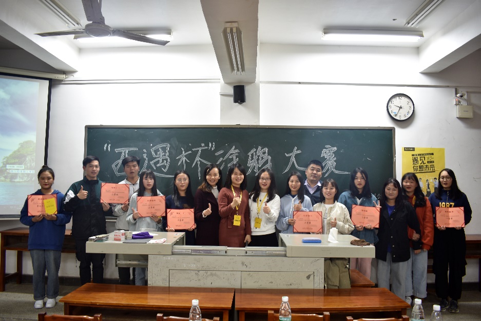 (通讯员:李嘉 摄影:杨佳林 责编:陈小丹)11月12日19时,由我校经贸学院商务管理教研室主办,经贸文娱部承办的“西遇”杯我心中的祖国T恤涂鸦大赛的决赛在我校二教501举行。商管教研室的老师和西遇服饰有限公司相关负责人出席了本次比赛并担任此次决赛的评委。