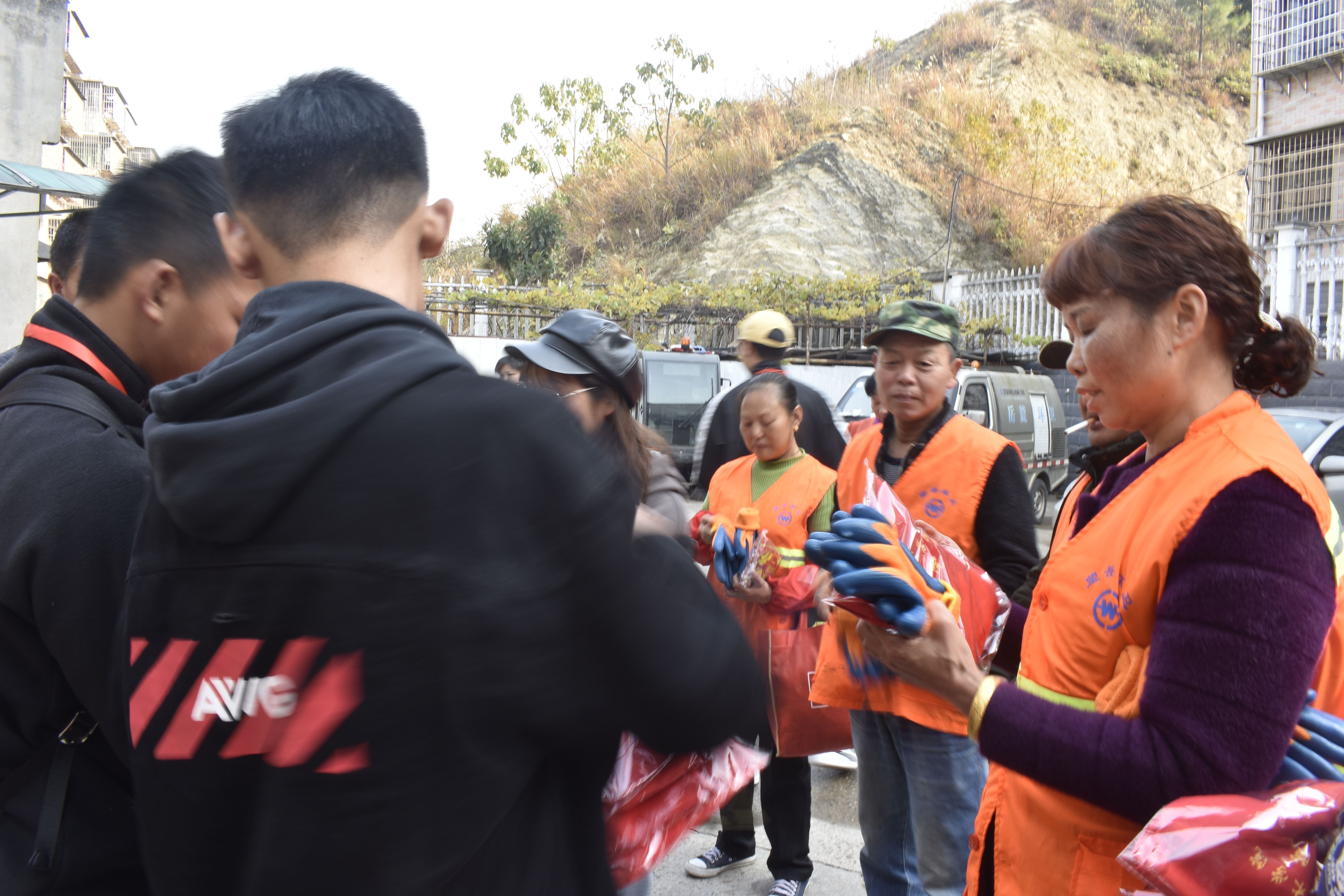到达活动地点,志愿者们对环卫工人日常工作进行调研,表达了我们的关心与问候。同时,我们也送上提前备好的冬季防寒劳保用品。环卫工人们对志愿者的此次活动表示衷心的感谢,并感慨现在社会对他们的关爱越来越多,工作起来也格外的有干劲。接着,志愿者为他们表演了《感恩的心》手语舞,让每个环卫工人都露出笑颜。环卫局陈所长一直拉着同学们的手,赞扬新时代青年的风采,并希望同学们将这样的爱心志愿活动继续传承下去。