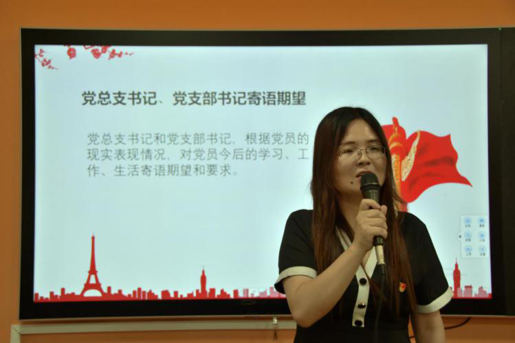 大会在庄重而热烈的氛围中圆满结束。党支部书记方红梅同志宣布了表决结果:18名入党积极分子发展为中共预备党员及21名预备党员按期转正均予以通过。她代表全体正式党员向以上39名同志表示了祝贺,并希望他们在未来的学习,工作中锤炼党性,提高党性修养,明确党员义务和责任,积极发挥党员先进性和模范带头作用,努力成为一名优秀的共产党员,为党支部争光添彩。