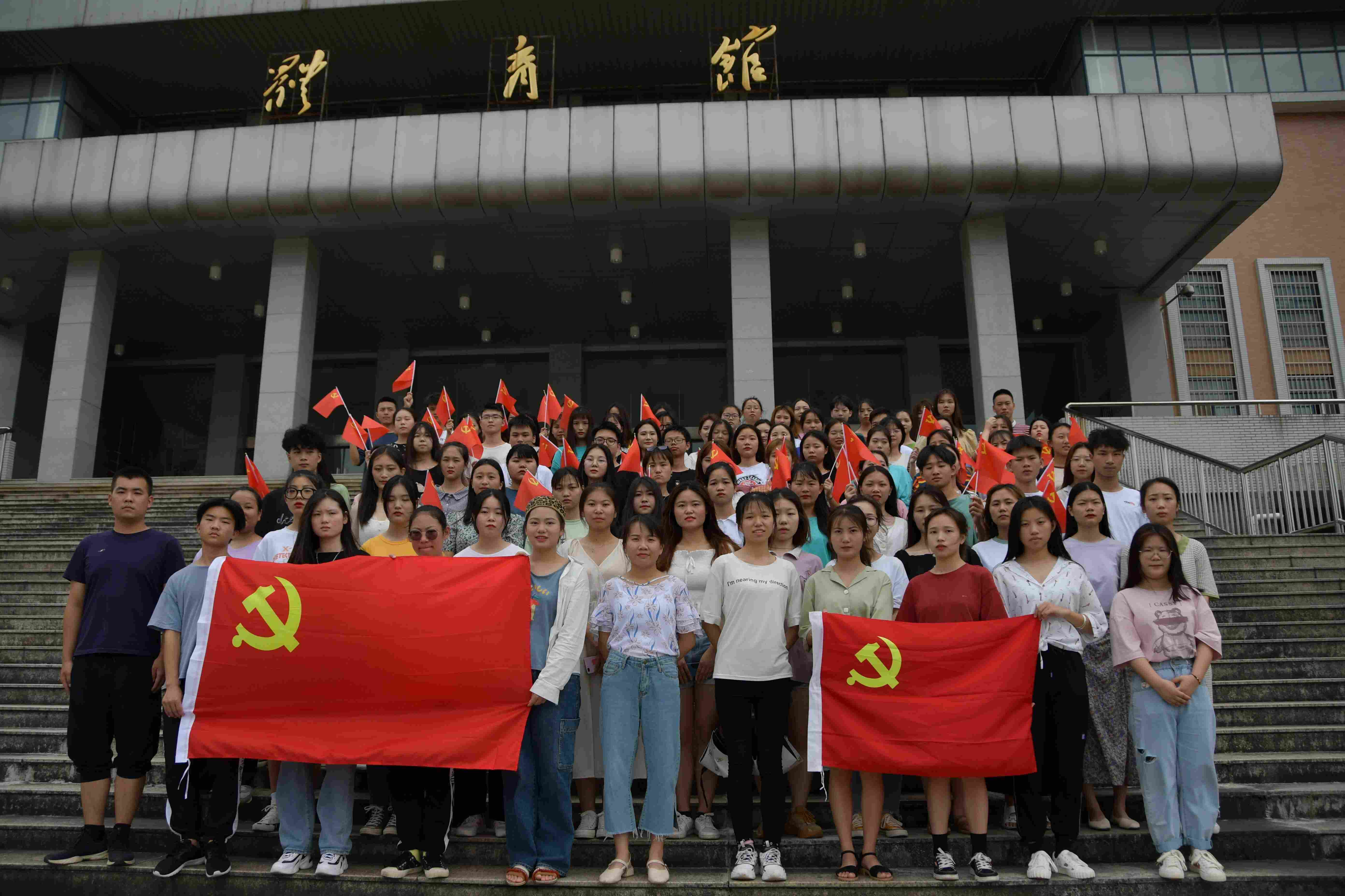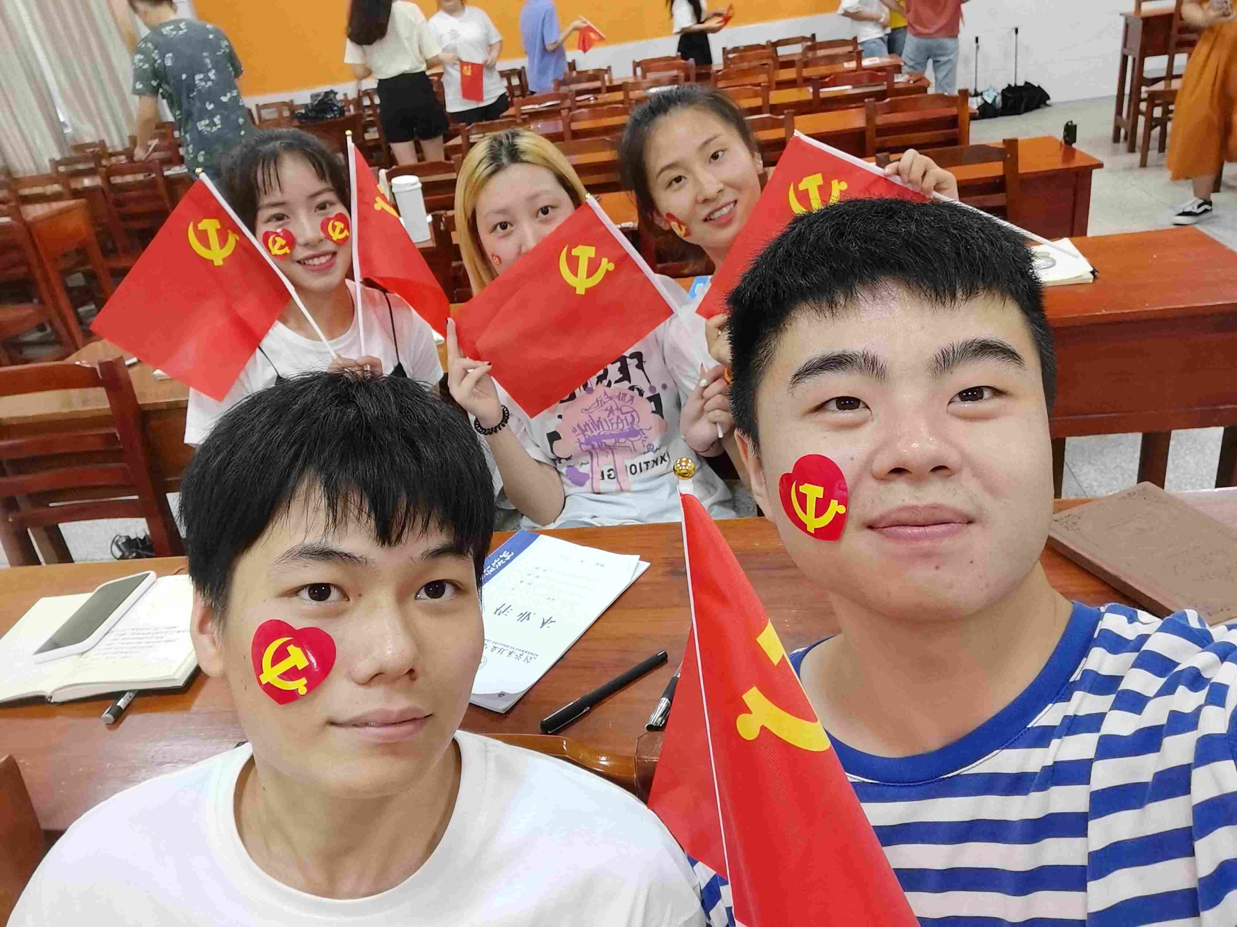 入党积极分子在孔子广场、办公楼前庭以及体育馆进行合影,并齐唱《国际歌》,表达对党的热爱,献上自己最美好的祝福。