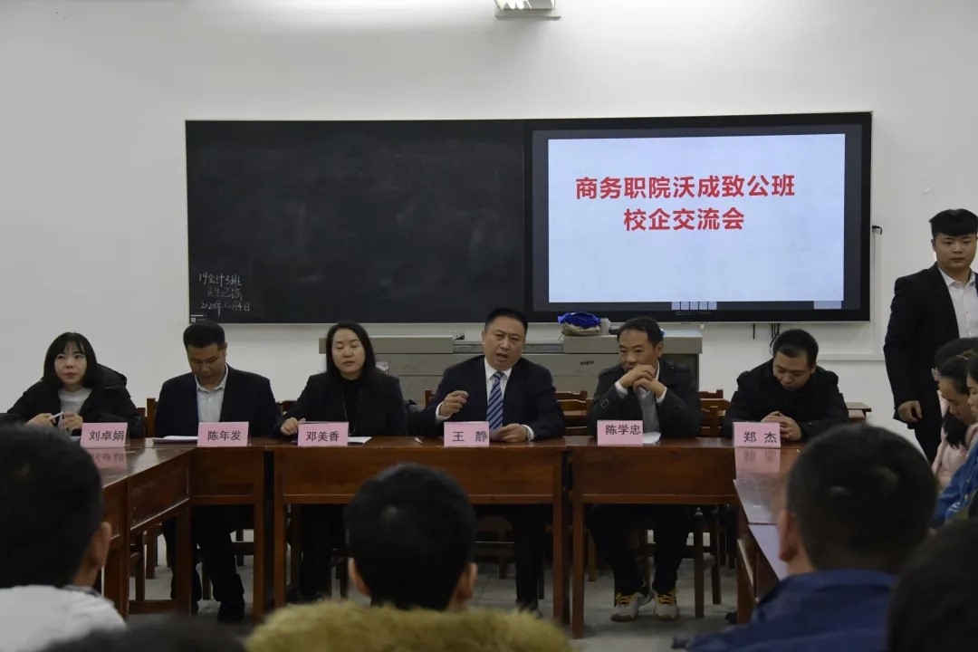 (通讯员 彭锦耀 刘灿)12月5日,我院成功召开“商务职院沃成致公班校企交流会”。经济贸易学院院长陈学忠,湖南沃成科技有限公司董事长王静、部门经理邓美香、刘卓娟、陈年发、郑杰等出席了本次会议。18级市场营销致公班全体同学参会。