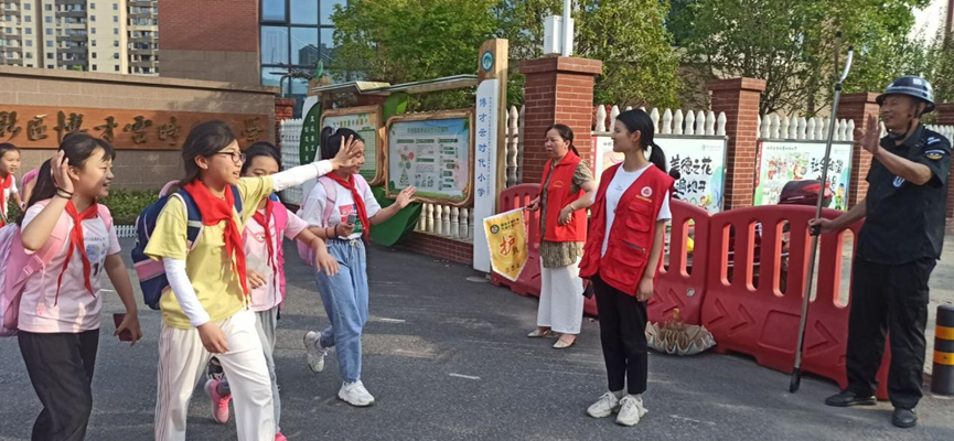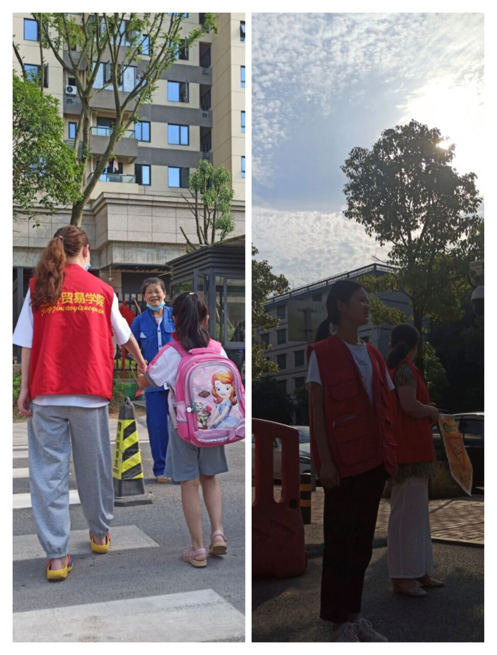 (通讯员 陈灿)“小弟弟、小妹妹,请排好队过马路哦!”“司机姐姐,请稍等。”“奶奶,请放心把妹妹交给我。”6月8日7时30分,博才云时代小学校门口,志愿者们不时地提醒上学的孩子、开车的司机、送学的老人。经过一段时间的筹备,今天是经济贸易学院学工党支部护学岗志愿者们“上岗”的第一天。