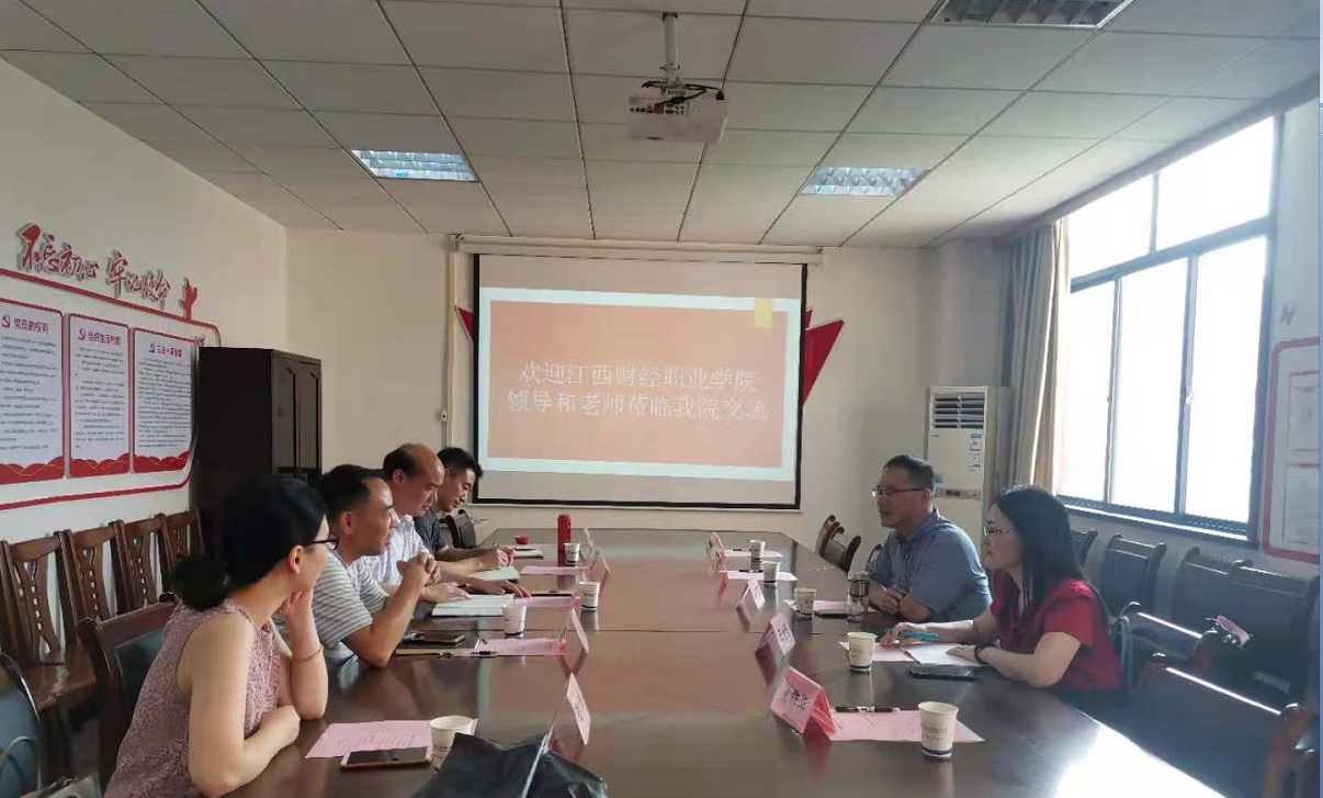 2021年7月13日下午,江西财经职业学院工商管理学院冯弋江院长一行来我校经济贸易学院进行参观和交流。学院党委委员易兰华副院长、二级学院经济贸易学院陈学忠院长、电子商务学院曾鸣院长出席交流会。