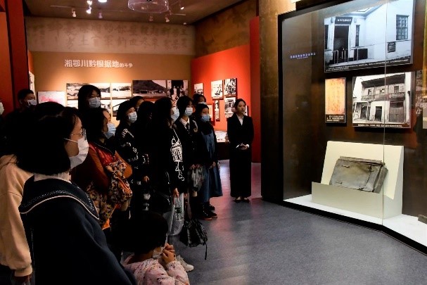 活动最后一站——湖南省党史陈列馆。走进陈列馆,首先映入眼帘便是“敢叫日月换新天”七个大字。大家紧跟陈列馆讲解员的脚步,湖南党史的脉络和细节清晰而生动的展现在我们眼前。文字、图表、照片、油画、地图、历史信件、书籍、物品、场景模拟、3D投影等清晰的记录了中共湖南地方组织的发展历程、重点展示了湖南党史军史人物的光辉业绩、展现了党在湖南领导人民进行革命、建设和改革所取得的辉煌成就和宝贵经验,让大家对党的艰辛历程有了更加深刻的了解。忆往昔,红色基因伴随着我们党从胜利走向胜利;看今朝,红色基因已经成为我们党的传家宝。红色基因中有信仰,可以使我们“不畏浮云遮望眼”,努力奋斗,传承红色基因艰苦奋斗的精神底色。大家纷纷表示要继续发扬中国共产党的艰苦奋斗、团结协作、不怕艰难的精神,不断增强责任感和使命感,在实现中华民族伟大复兴的中国梦的实践中书写好自己的人生篇章。