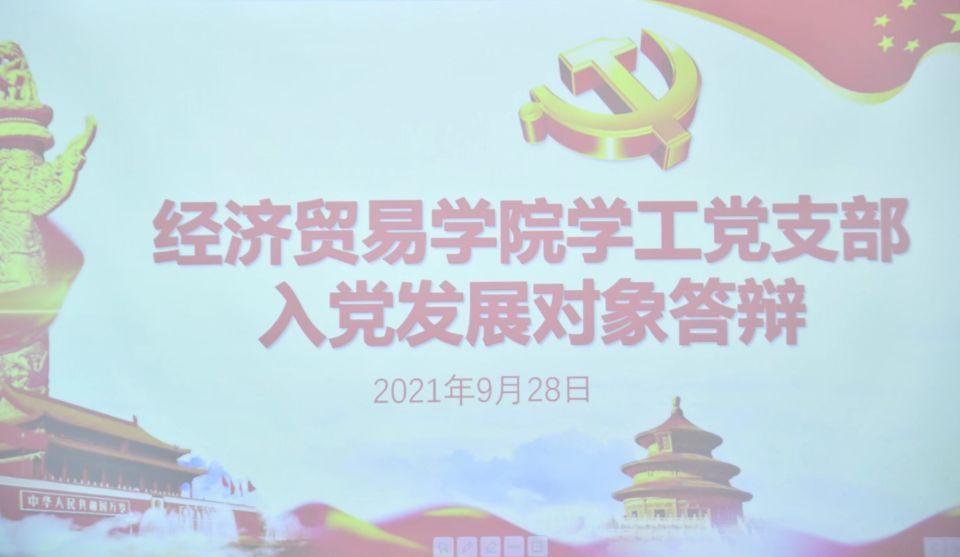 9月28日下午2:30,经济贸易学院学工党支部在第二教学楼101教室开展“发展新党员·增添新力量”答辩大会。大会由预备党员陈灿同志主持,19名发展对象候选人针对自己的实际学习经历、获奖情况、申请入党前后思想上、行为上的认识改变进行简明扼要的介绍。在答辩环节,每位发展对象候选人依照抽选的题回答有关党的理论问题,同志们随机答辩,实事求是、自信的展现自我,表明决心。其中,19级商务管理3班吴晓兰同志在回答“结合实际谈谈为什么要入党?入党动机是什么?”时留下了动情的泪水,她用真诚的语言讲诉着:“作为中华儿女,祖国的繁荣与昌盛是所有中国人的心愿,个人与国家密不可分。我们要心怀祖国,付诸行动;要继承和发扬革命精神,铭记历史;要做一把中国共产党的利剑,去维护公平与正义,除去世间的污秽。”