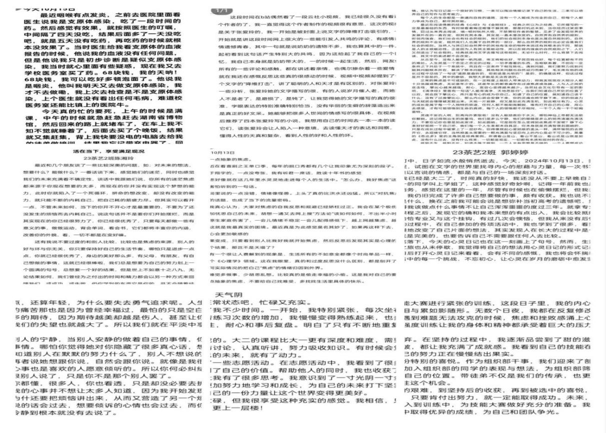 ▲同学们撰写的心灵日记