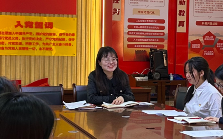 紧接着,预备党员代表22 级商务管理 2 班周琛以真挚的情感,分享了自己作为预备党员的心得体会与成长感悟。她谈到,成为一名预备党员既是荣誉,更是责任,在今后的学习生活中,将以更高的标准严格要求自己,为党和人民的事业贡献自己的青春力量。