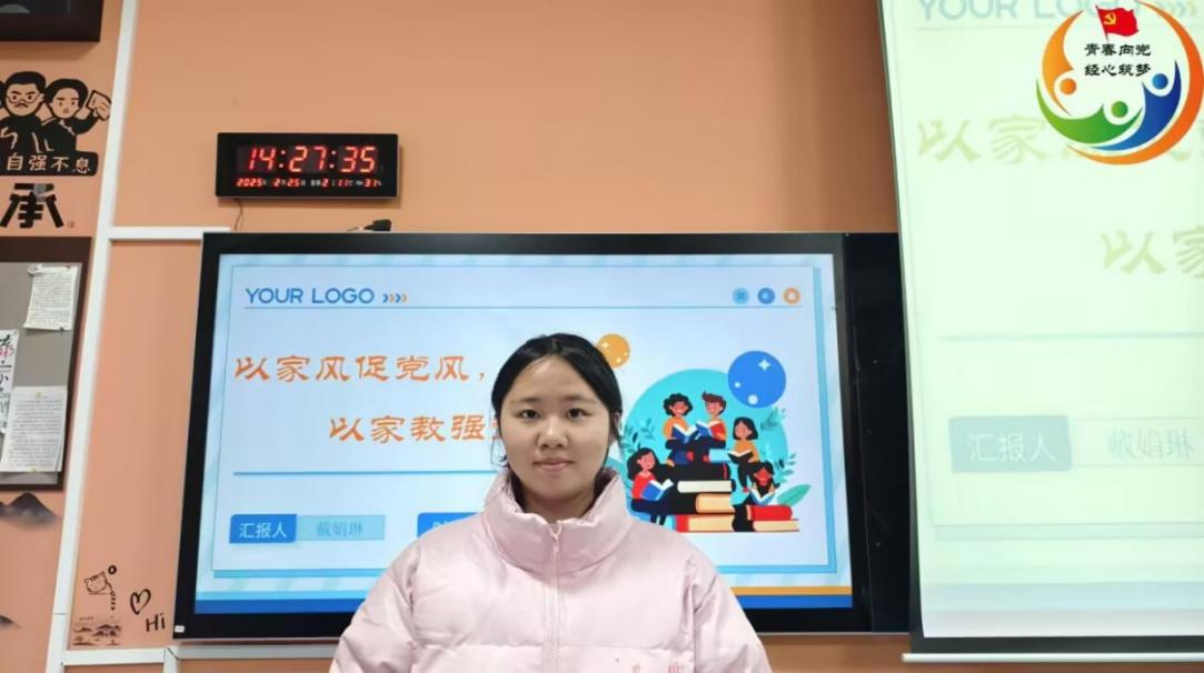 (通讯员 郑婷)为深入贯彻党的教育方针,强化入党积极分子的党性修养。2025年2月25日下午14:30时,经济贸易学院学工党支部在博思楼101(经济贸易学院分党校)组织开展“以家风促党风,以家教强党性”主题党日活动。活动由预备党员戴娟琳同志主持,经济贸易学院学工党支部全体党员及入党积极分子参加此次活动。