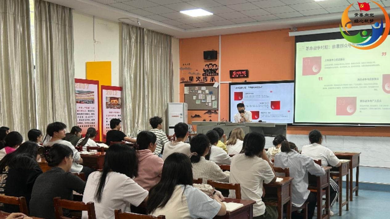 (通讯员 邢雨帆)永固党性系民心,党群同心筑根基。2025年4月22日下午3:30,经济贸易学院学工党支部于博思楼101开展“新时代党群关系与党性建设”主题党日活动,本次活动由经济贸易学院学工党支部党员教师潘鑫老师和梁淦明老师主讲,经济贸易学院学工党支部全体党员,入党积极分子参与此次活动。