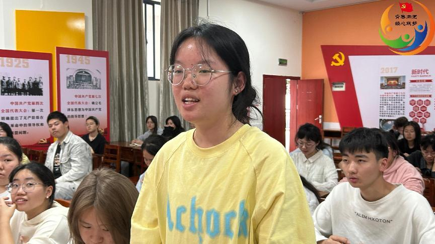 在交流讨论环节,同学们踊跃发表自己的学习感悟。其中,23级市场营销4班黄瑶同学面颊通红,激动地说:“听完老师们的讲解,我深感责任重大。今后我会积极参与志愿服务,倾听群众声音,为群众办实事,用实际行动践行党的宗旨,密切党群关系。