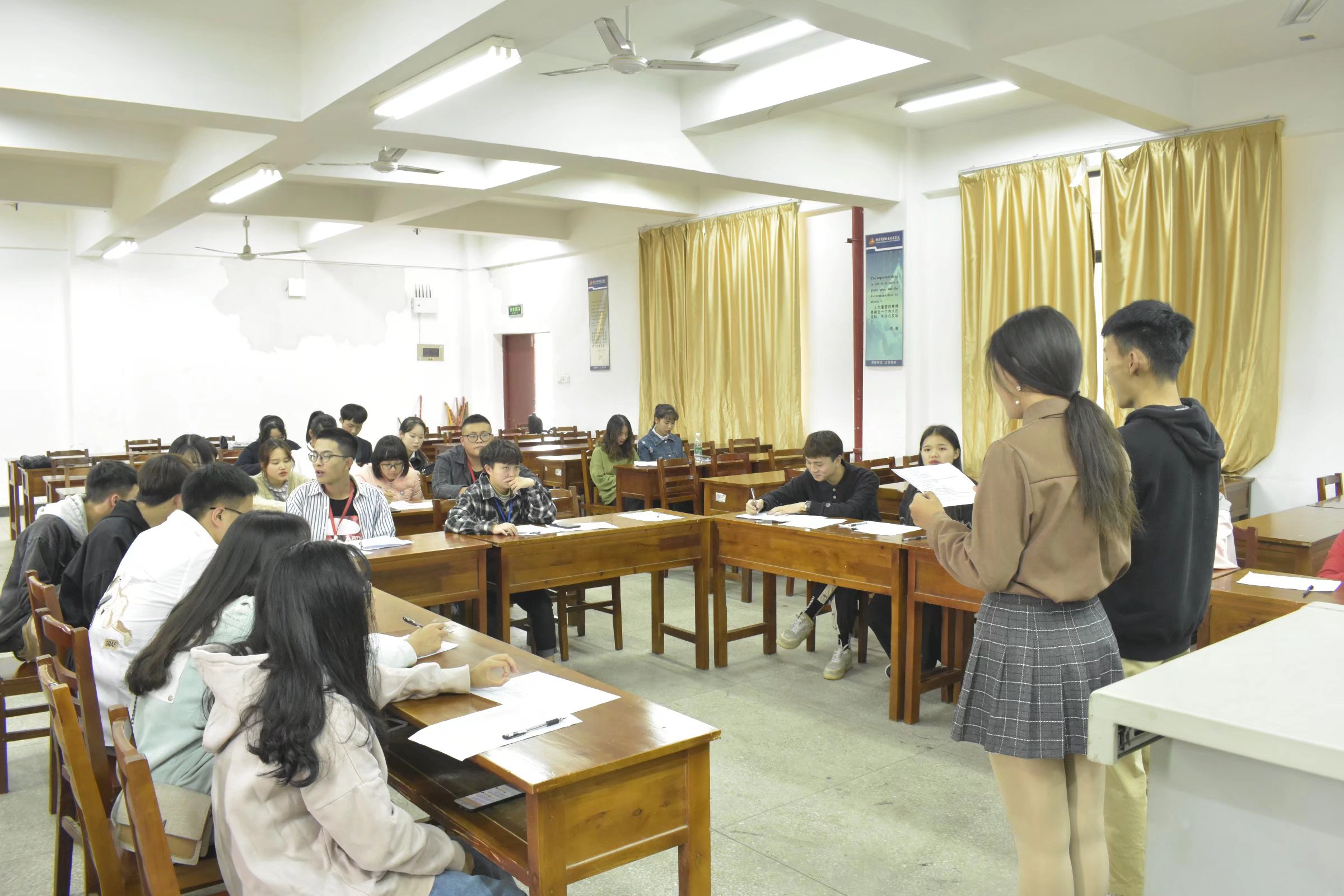 第二个环节:按抽签分配两两一组模拟主持的场景。