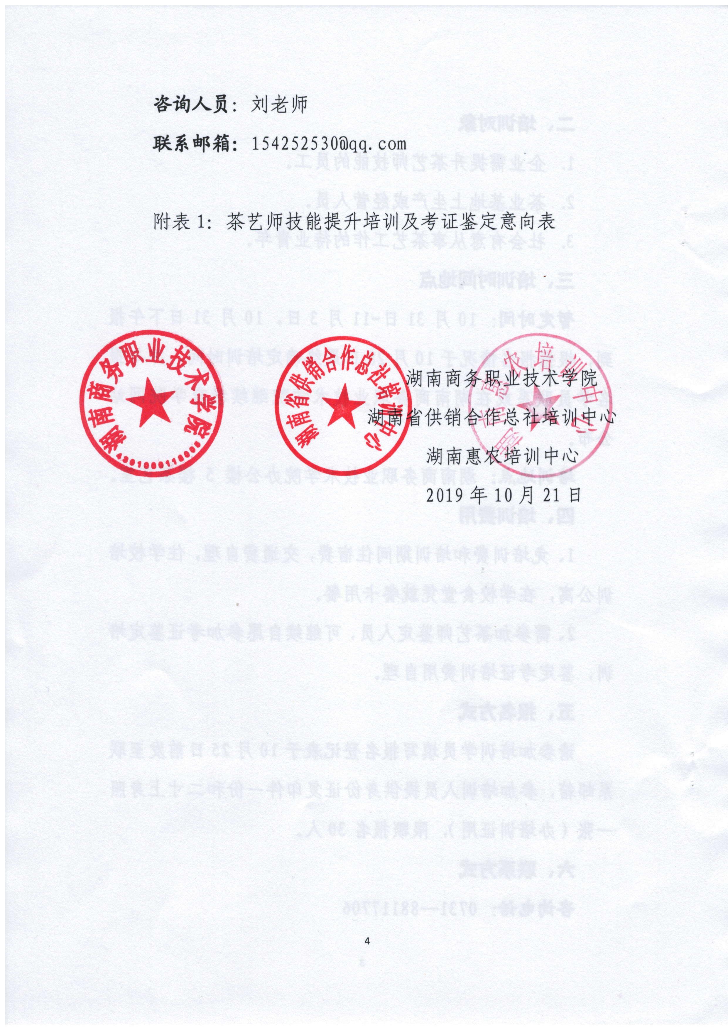 附表1:茶艺师技能提升培训及考证鉴定意向表