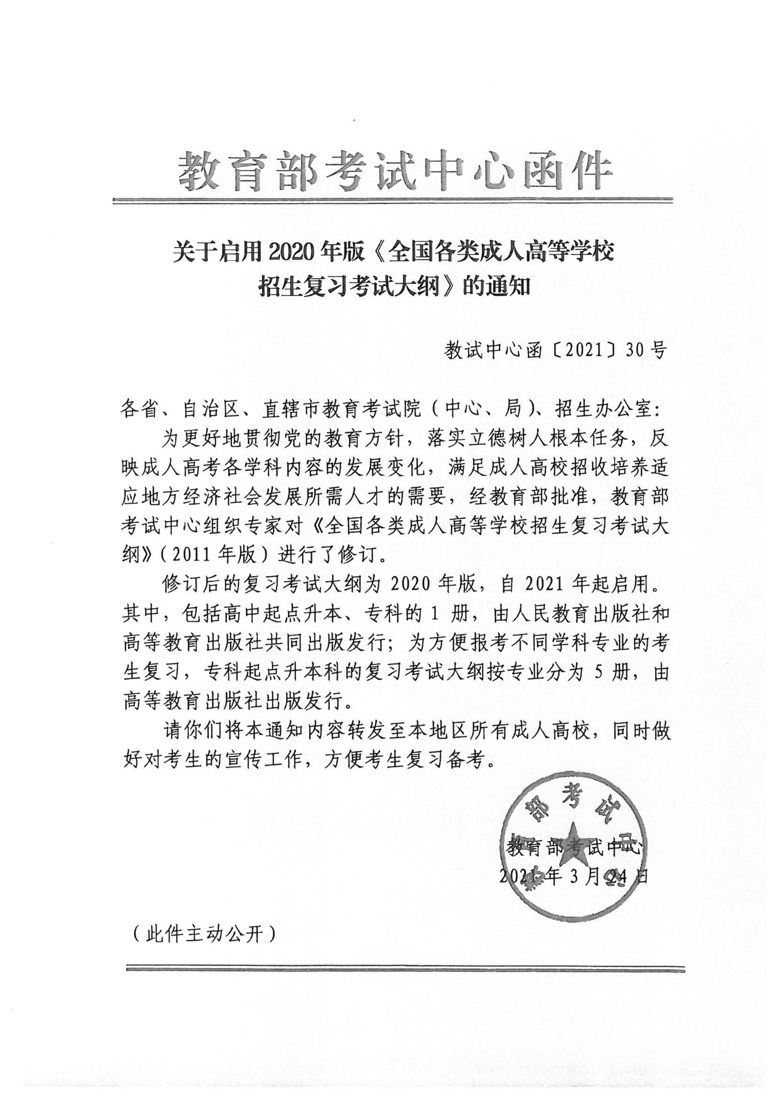 关于启用2020版《全国各类成人高等学校招生复习考试大纲》的通知