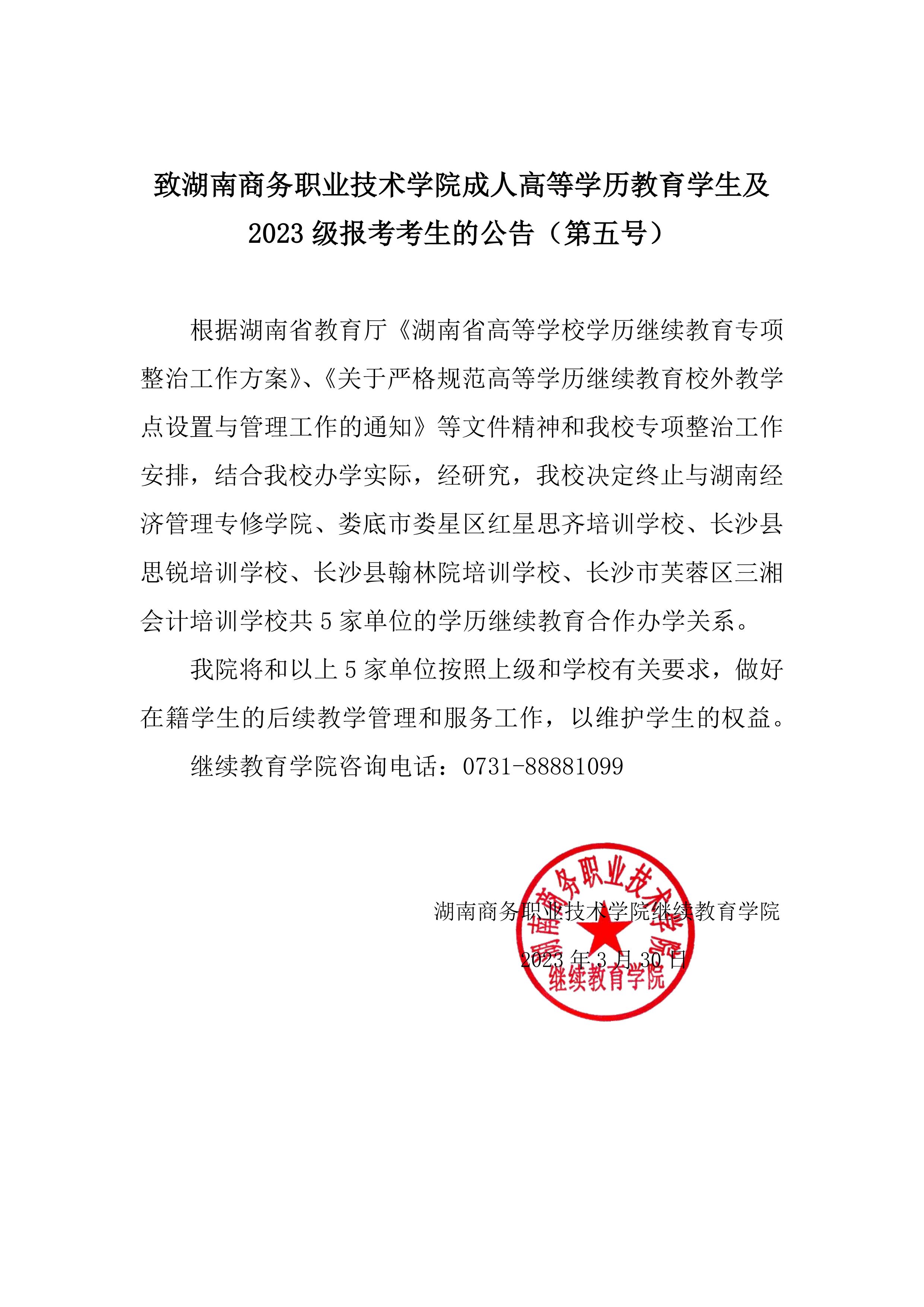 致成人高等学历教育学生及2023级报考考生的公告(第五号)