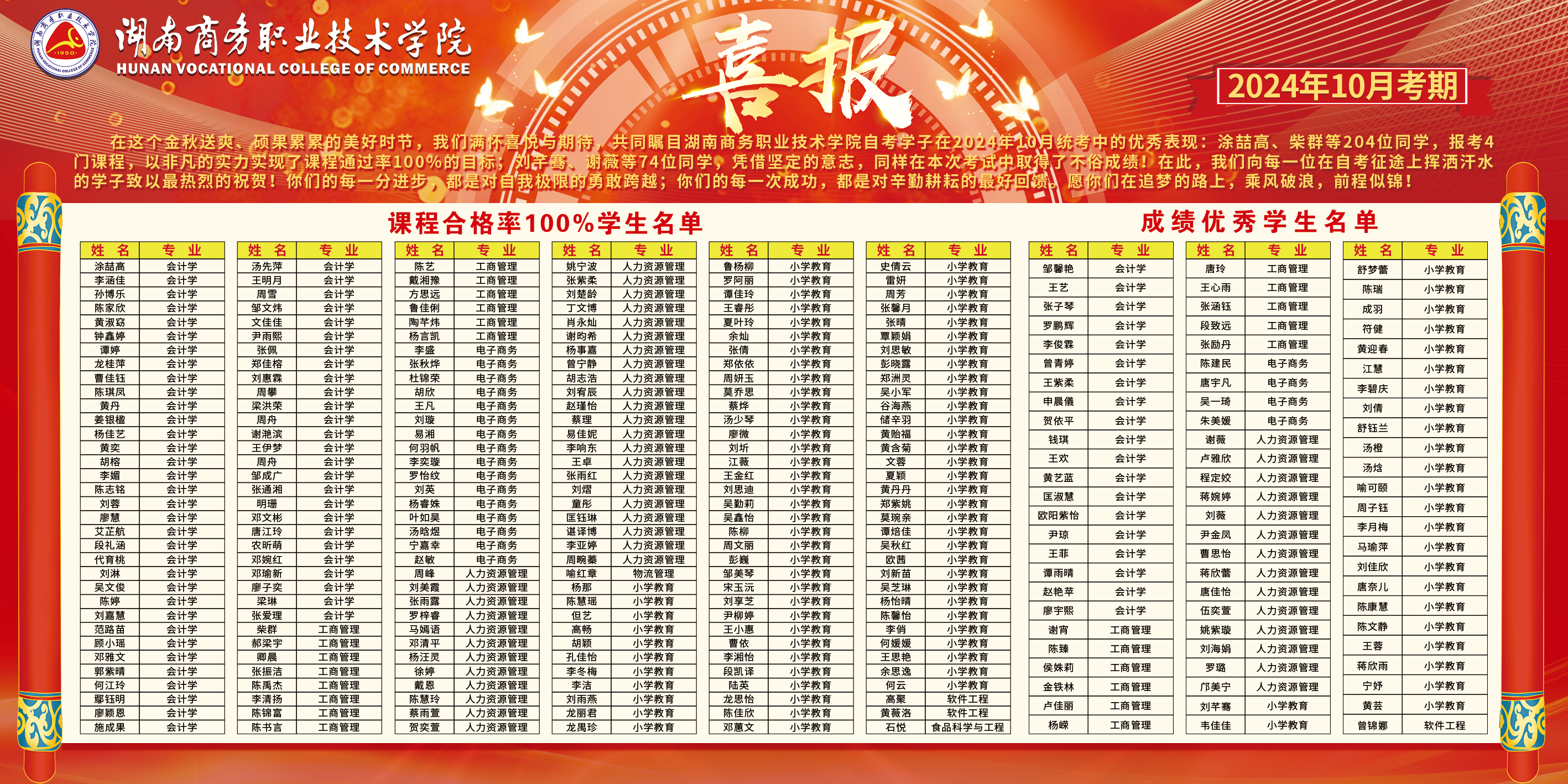 星光不问赶路人,岁月不负有心人。2024年10月高等教育自学考试成绩于已公布,我校自考专本同读班的学子们凭借不懈的努力,再次交上亮眼答卷、续写佳绩!