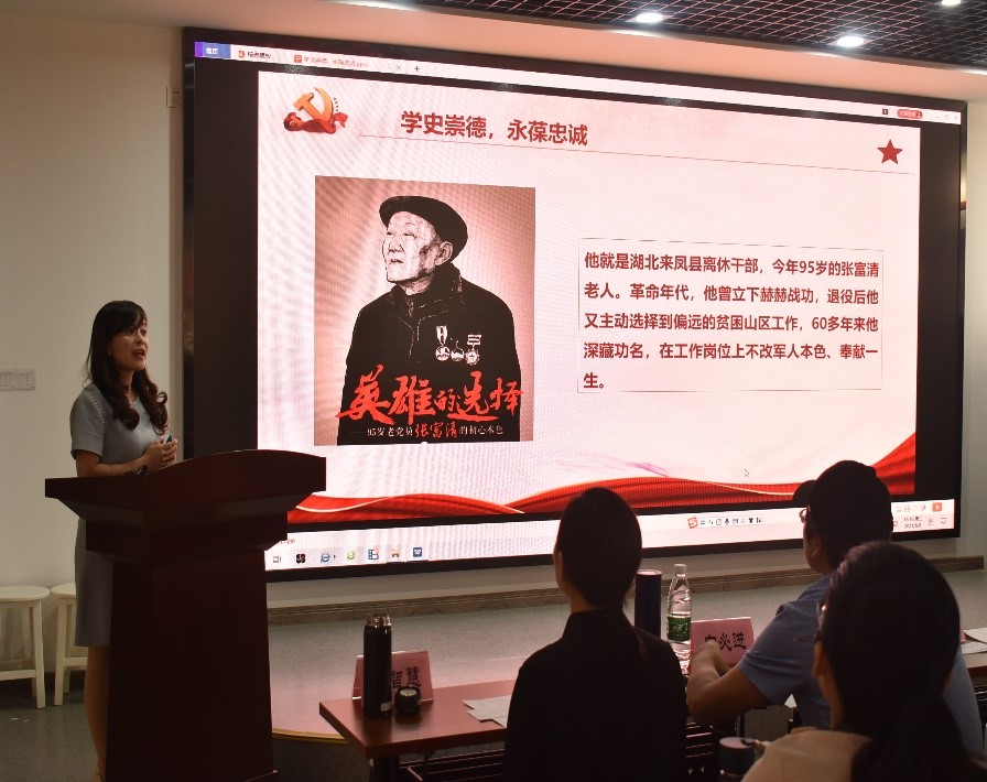 本次主题党日活动主要是由马克思主义学院的9位老师进行党史宣讲,学校党委周忠新书记等五人担任评委,会计学院党支部和机关一、四支部参与观摩学习讨论。首先由肖彬同志讲到:“党历来重视党史学习教育,用党的实践创造和历史经验启迪智慧、砥砺品格。站在喜迎中国共产党百年华诞的重大时刻,开展党史学习教育,必须不断围绕重点内容、聚焦核心要义,切实提高学习教育成效”。