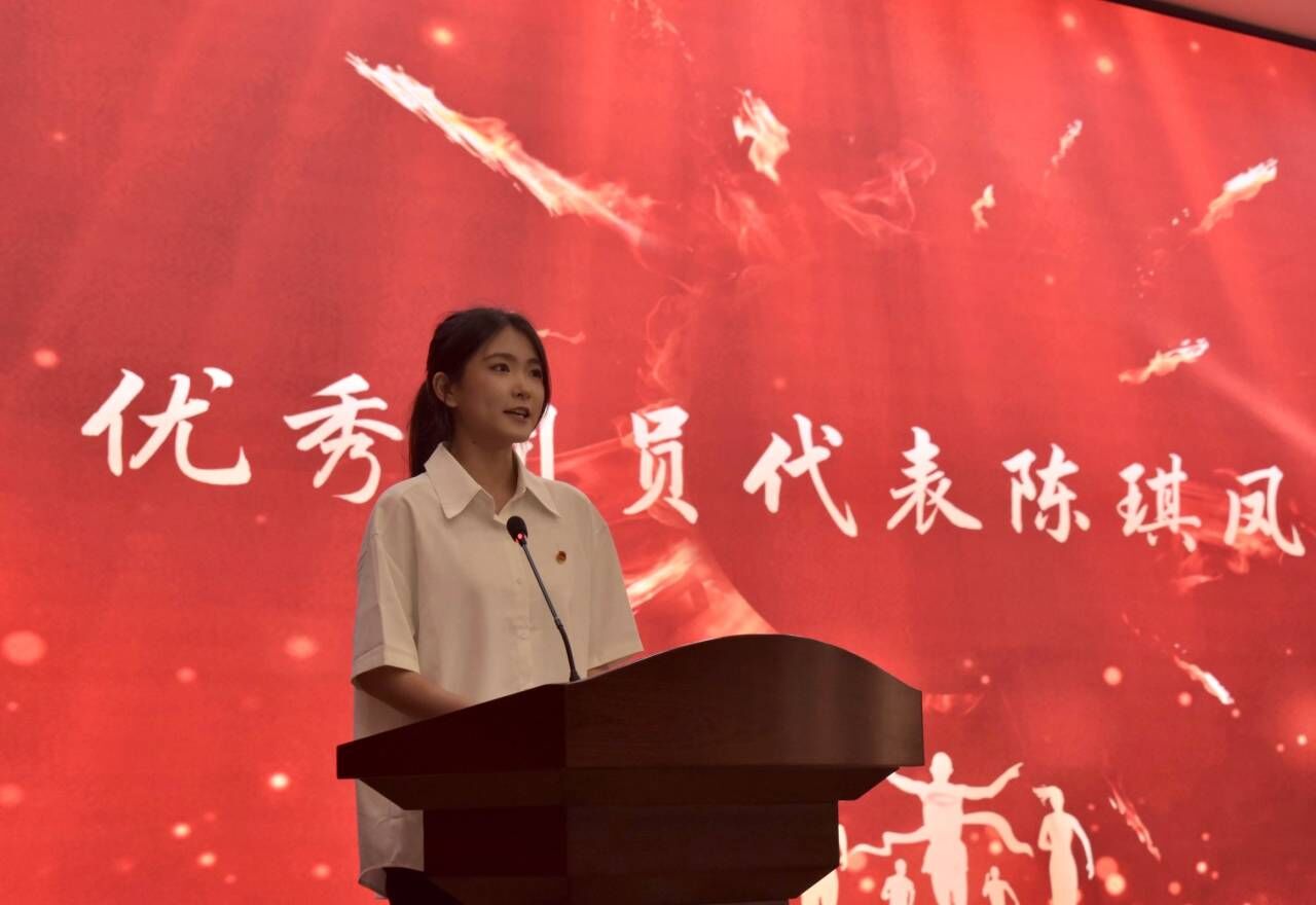 大会第五项,优秀团员代表陈琪凤发言。她指出我们作为当代青年要有理想、有抱负、有作为,要充分发扬和传承五四精神,积极承担时代使命,并呼吁我院学子应当继续奋勇争先,不负青春,树立理想,努力成为堪负民族复兴重任的新时代接班人。